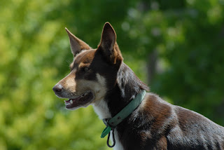 an artificial limb; constricting his movement/s somewhat. The kelpie pup that