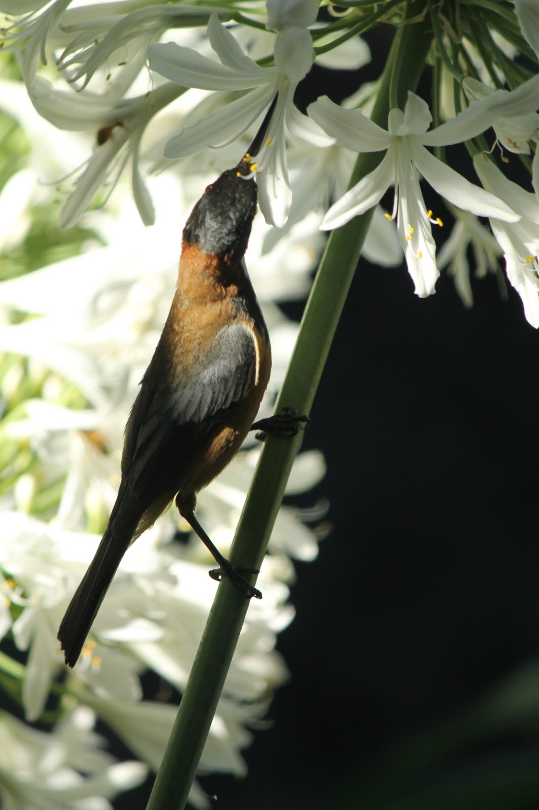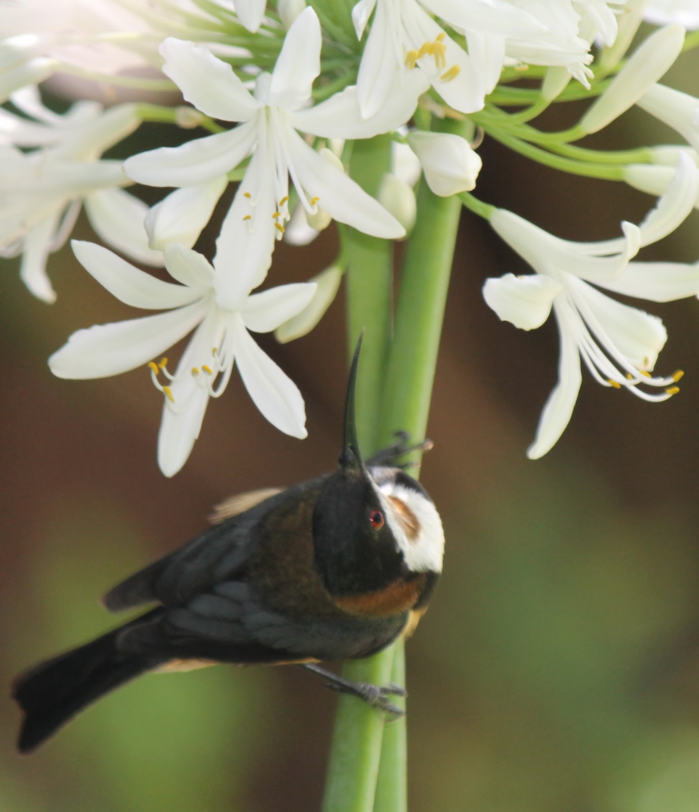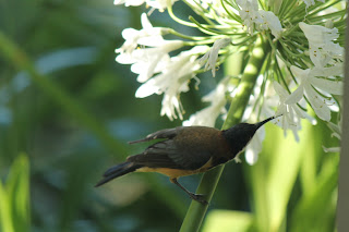 So, here are my scintillating answers. Get in, buckle up and hold on. By the way, all of the photographs on here today were taken by me as I worked on my laptop on the veranda yesterday. Camera close handy for when they arrived to suck the nectar from the Agapanthus. Gotta love these lil birds